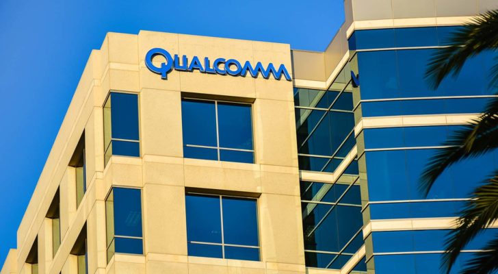 The Qualcomm (QCOM) logo on the side of a building in San Jose, California.The Qualcomm (QCOM) logo on the side of a building in San Jose, California.