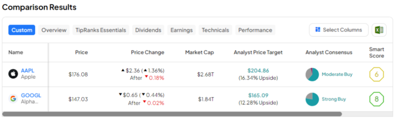 Analysts say Apple stock is a “moderate buy,” with 16 buys, nine holds, and one sell over the past three months. Apple’s average price target of $204.86 implies an upside potential of 16.3%.