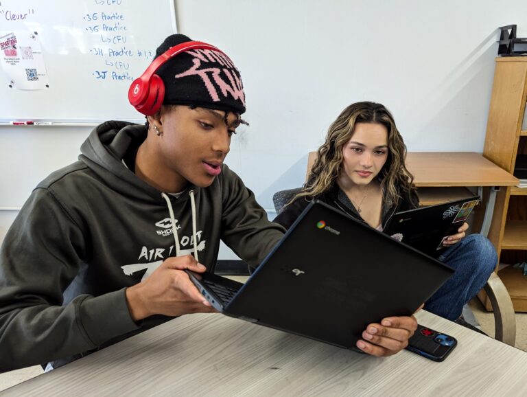 Most of Oxnard’s Data Science classes enroll a mix of students who are using the course to fulfill their required third year of math and those who’ve already taken Algebra II. According to district data, students who took Data Science as juniors in the 2022-2023 year were more likely to sign up for a math class their senior year. (Only about 10 percent of those students enrolled in Math III, an integrated math class that’s equivalent to Algebra II; larger shares enrolled in Statistics, Math for Finance Literacy and other classes). Meanwhile, the share of students receiving a D or F in Math III has dropped slightly since the Data Science course was introduced in 2020, the district said.