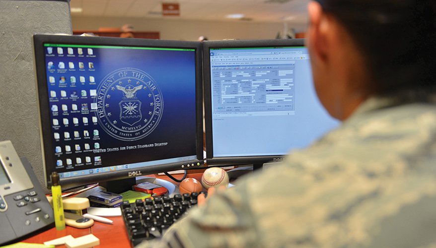 An Air Force sergeant logs data into the Cargo Movement Operations System.
