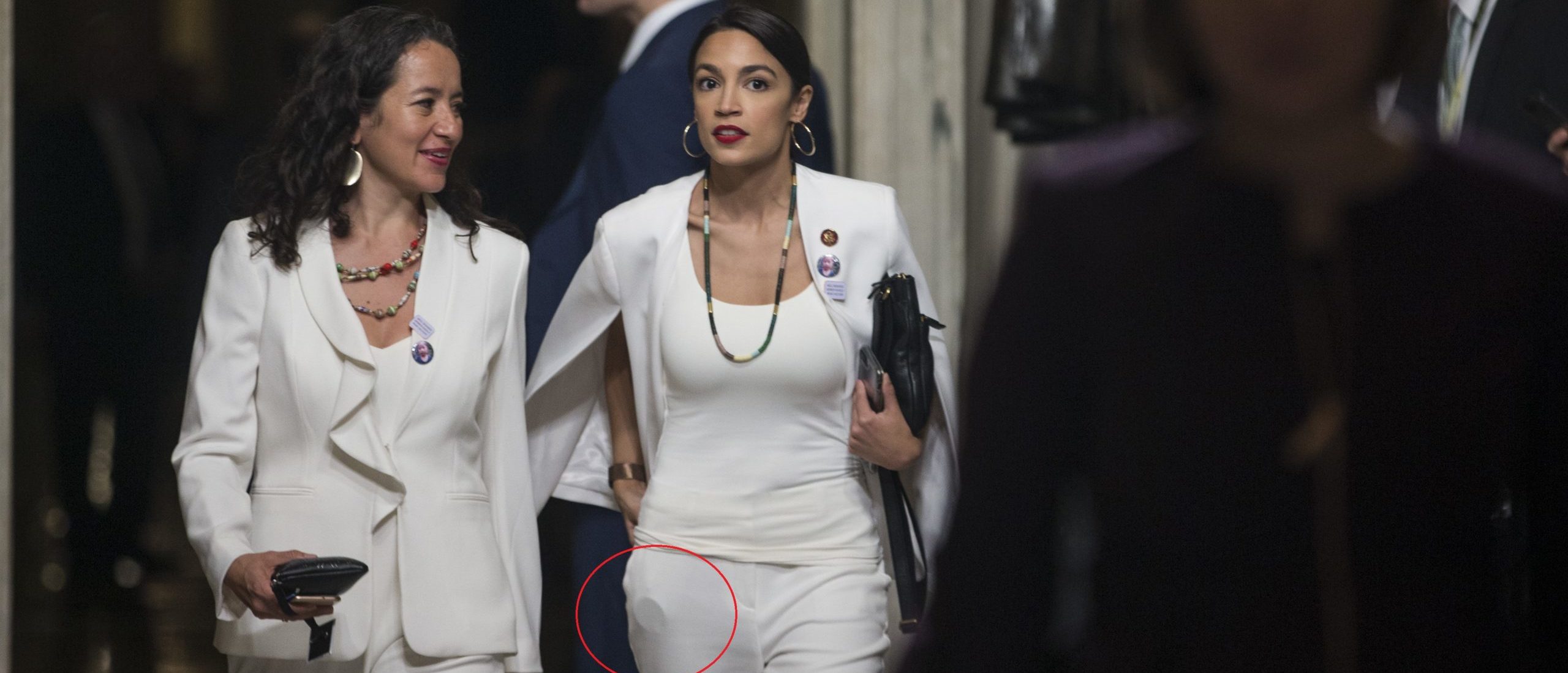 While the wet blanket informs us that, given the women’s rights-themed attire of House Democrats, the bulging disc is far more likely to be a contraceptive receptacle, , I choose to live in a world where AOC stuffs her thick lips. Pouch. you have to believe. I don’t think someone like AOC is so completely irredeemable as a human being that she doesn’t occasionally throw in Oprah Gimphrey to maintain her edge.