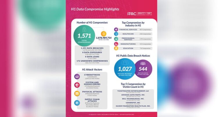 According to the resource center, 1,571 data breaches occurred in the first half of 2024, affecting a total of about 1.08 billion victims, a figure that includes people who appear multiple times in publicly released data breach notifications.