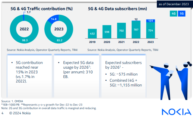 India boasts a staggering 131 million 5G subscribers, which is expected to jump to 575 million by 2026, according to a report by Nokia. By 2026, expected 5G data usage is expected to skyrocket to 310 EB per year.