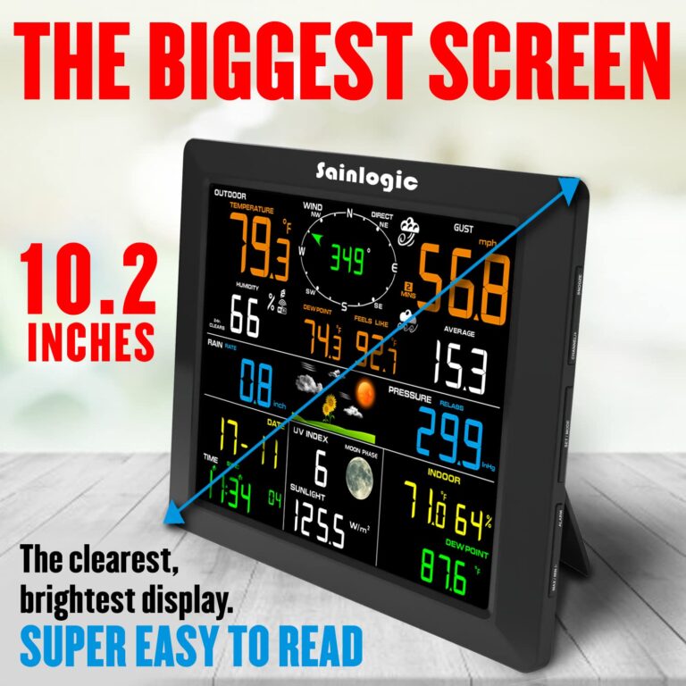 I’ve been using Sainlogic Weather Station for a while and it has exceeded my expectations. The large 10.2-inch display shows clear and detailed information on various weather parameters, making it easy to track changes in real-time. The wireless connectivity feature allows you to access weather data remotely through a mobile app, which is very convenient, especially when you are away from home. The accuracy of measurements such as temperature, wind speed, and humidity is excellent, and I appreciate the additional features such as UV index and sunlight information.