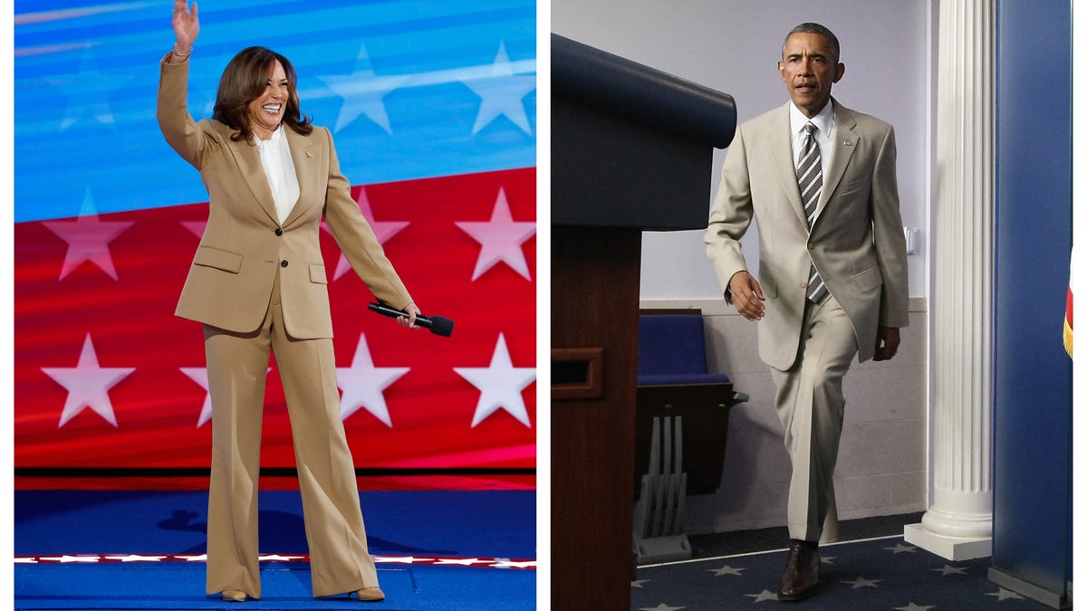 In what many are calling a tribute to former President Barack Obama’s stylish but highly controversial brown suit, Vice President Harris Democratic National Convention She wore her own interpretation of the tan color, and while some hated it, others loved it, but it was clear that her strategic sartorial choice had people talking all night.