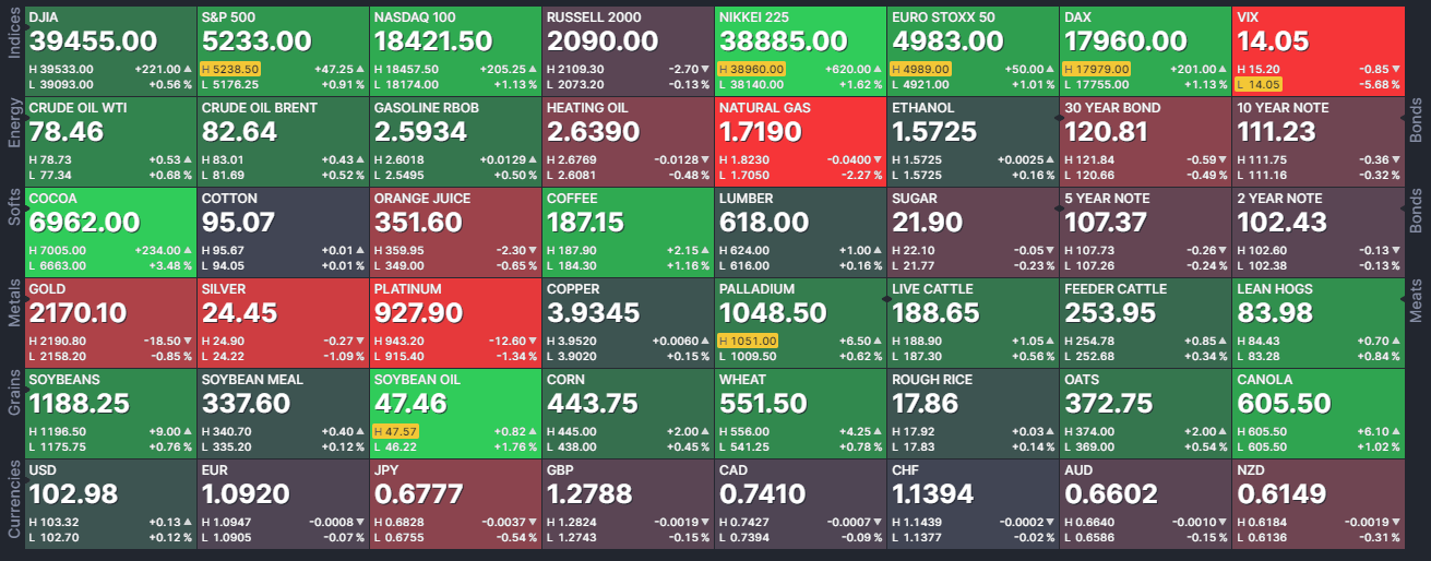 Here’s a summary of intraday actions for assets: