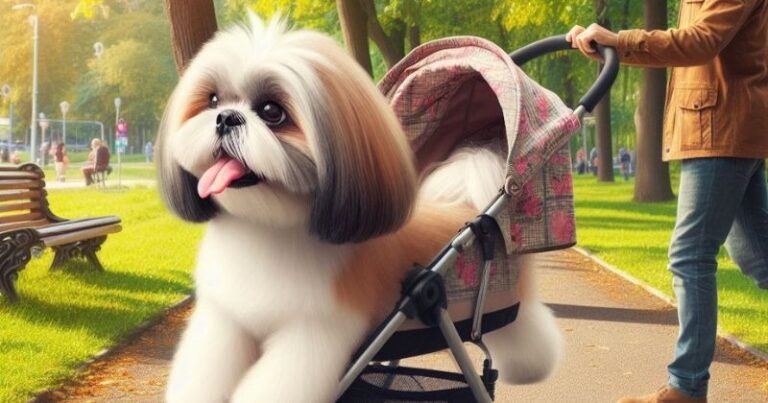 My 14 year old dog was being walked in a stroller | Image: Generated by DALL.E
